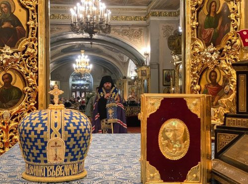 Вечером 14 февраля 2021 года, в канун праздника Сретения Господа Бога и Спаса нашего Иисуса Христа, епископ Павлово-Посадский Фома совершил всенощное бдение в Богоявленском кафедральном соборе города Москвы.