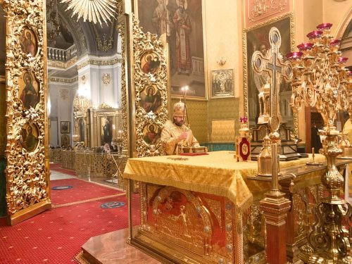 В Неделю 28-ю по Пятидесятнице епископ Павлово-Посадский Фома совершил литургию в Богоявленском соборе