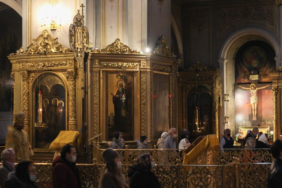 15 ноября 2020 года епископ Павлово-Посадский Фома совершил Божественную Литургию в Богоявленском кафедральном соборе в Елохове.