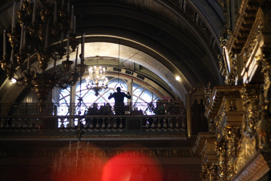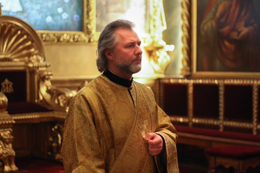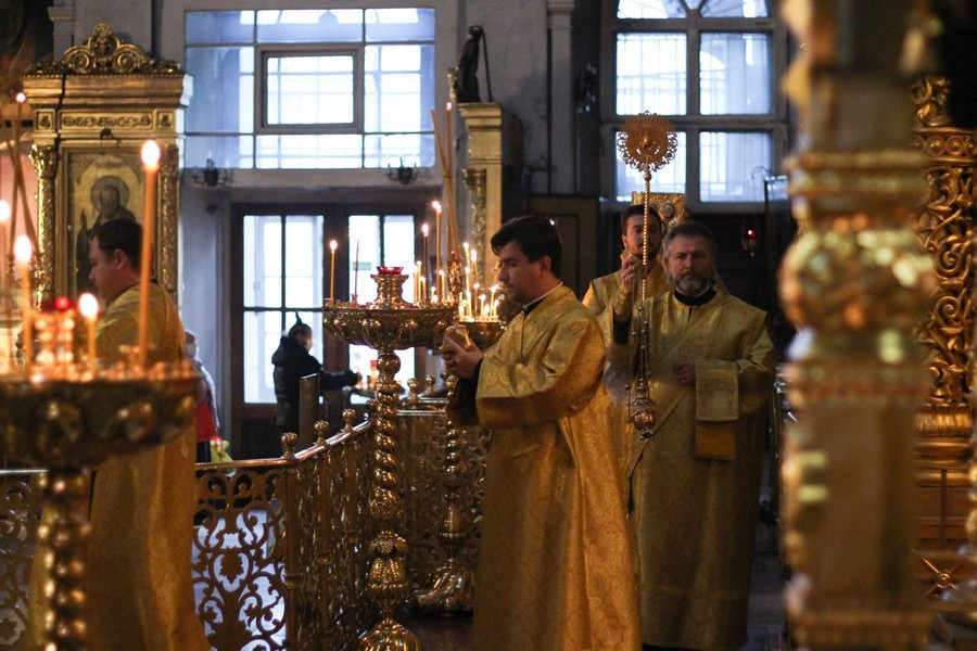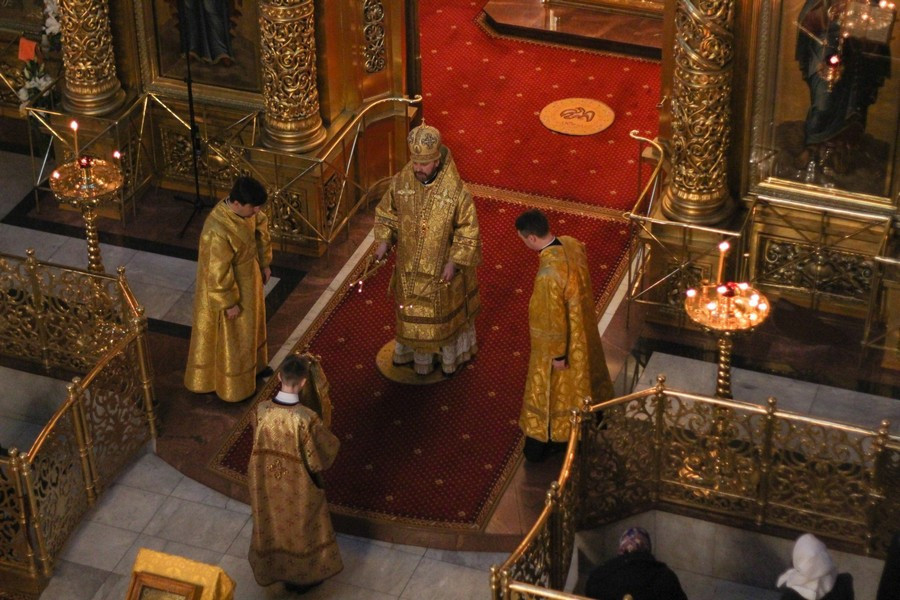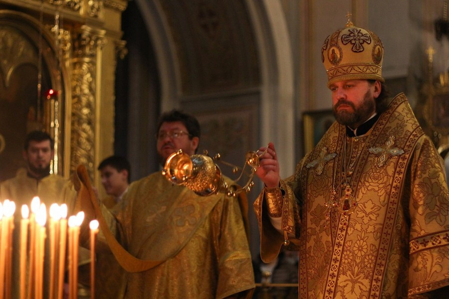 Его Преосвященству сослужили клирики собора.