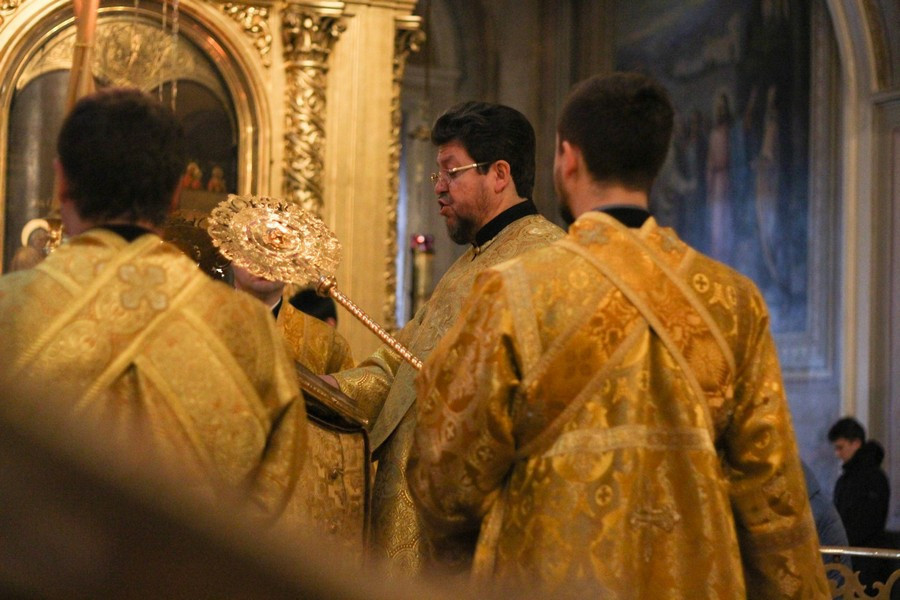 Епископ Павлово-Посадский Фома совершил Божественную Литургию в Богоявленском кафедральном соборе