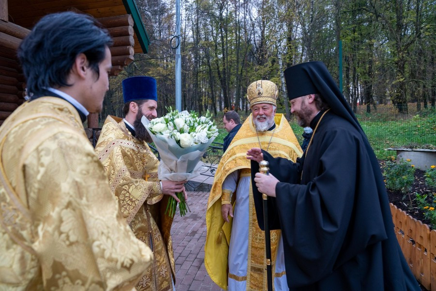 Далее епископ Павлово-Посадский Фома поздравил с днем рождения регента хора храма святых мучениц Веры, Надежды, Любови и Матери их Софии во Внуково Елизавету Бычкову.
