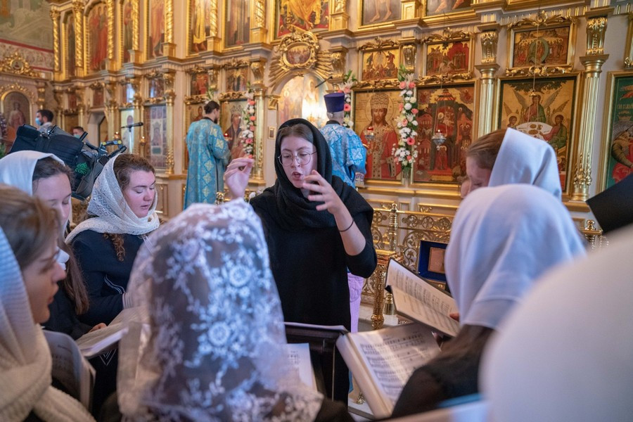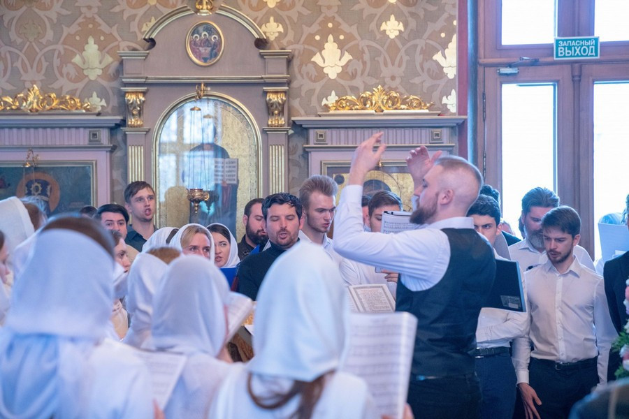 Богослужебные песнопения исполнили сводный хор Молодежного отдела Московской городской епархии под управлением Александра Демидова, и сводный молодёжный хор Западного Викариатства под управлением Ксении Ураковой.