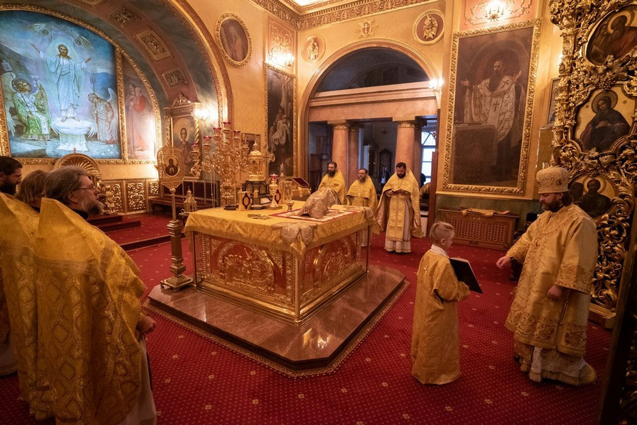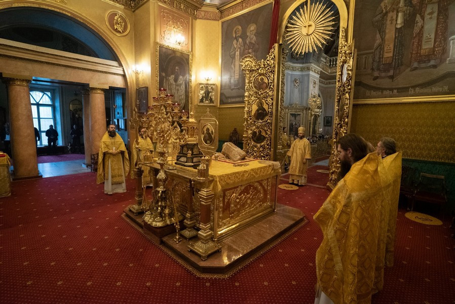 По окончании Божествнной Литургии был обслужен молебен всем Московским святителям и вознесена молитва перед мощами святителя Алексия, митрополита Московского.