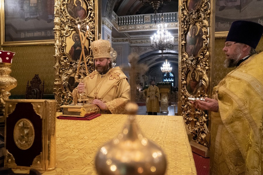 Епископ Павлово-Посадский Фома возглавил Божественную Литургию в Богоявленском соборе в день памяти Московских святителей