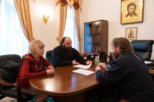 В Финансово-хозяйственном управлении Московского Патриархата председатель управления епископ Наро-Фоминский Парамон провел рабочую встречу с епископом Павлово-Посадским Фомой, руководителем Административного секретариата Московской Патриархии, управляющим Западным викариатством г. Москвы.