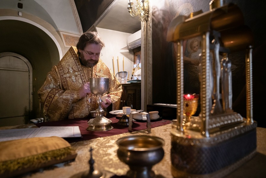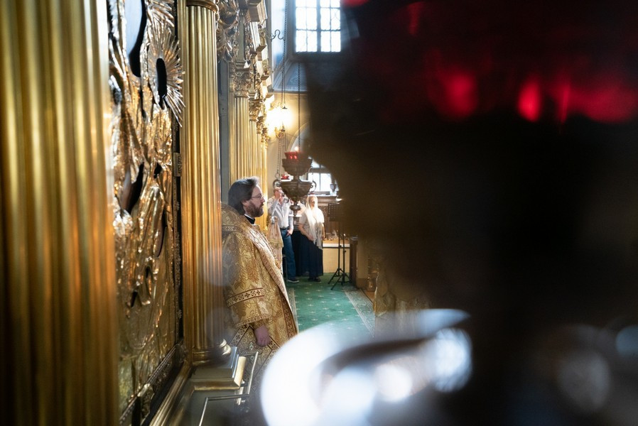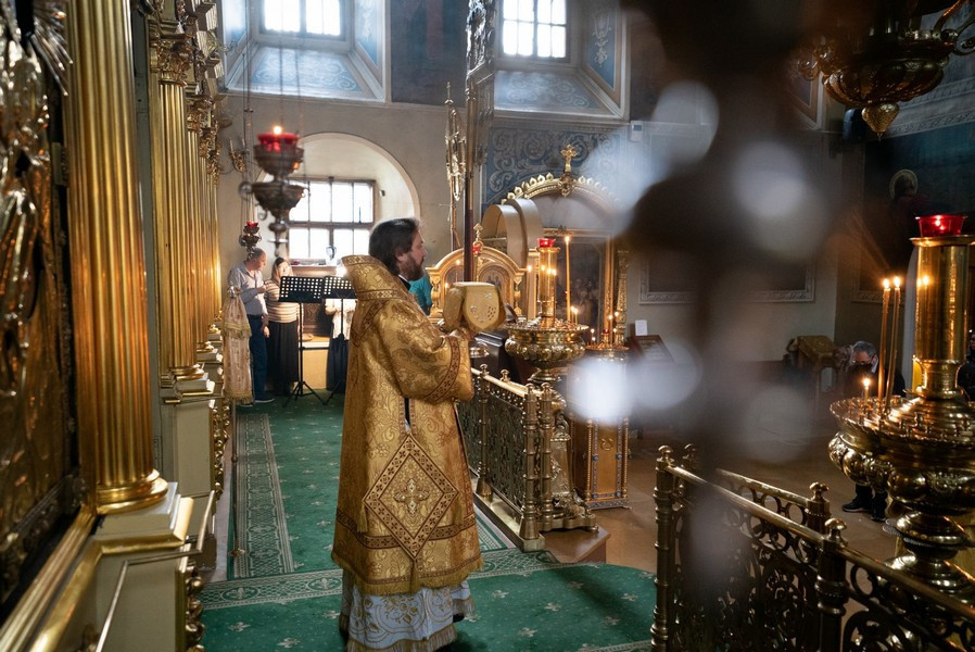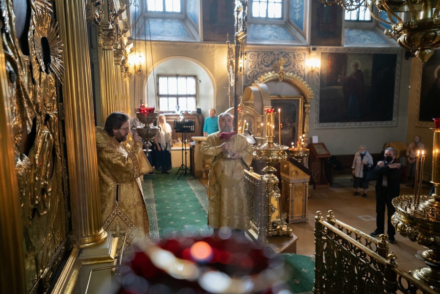 8 октября 2020 года, в день памяти святого апостола и евангелиста Иоанна Богослова, в храме святителя Николая Чудотворца в Хамовниках епископ Павлово-Посадский Фома совершил Божественную литургию.