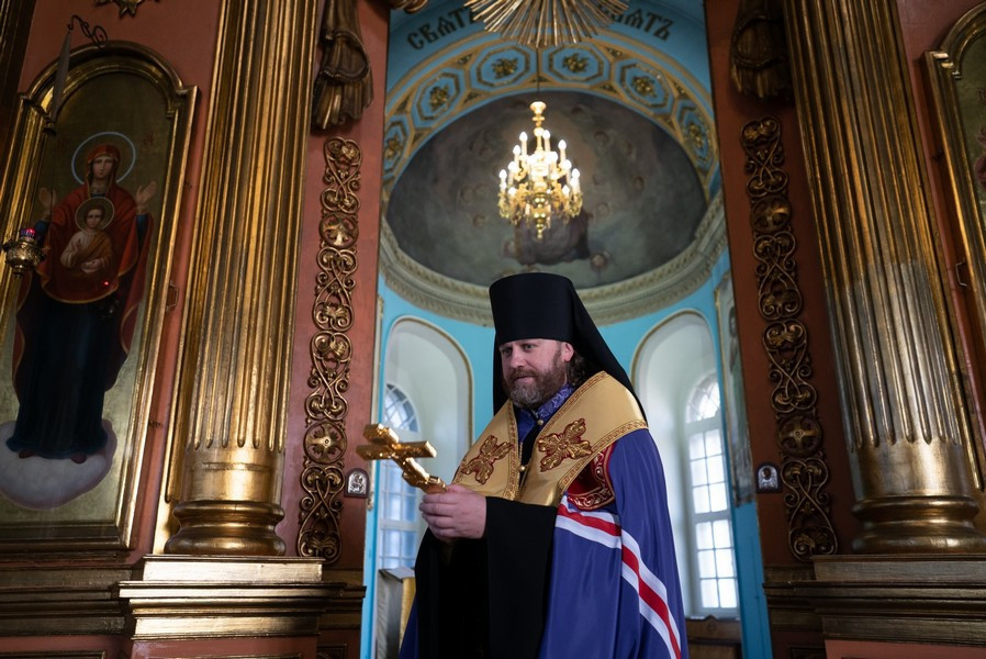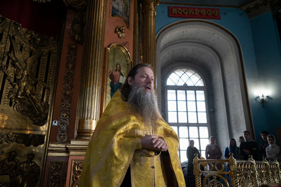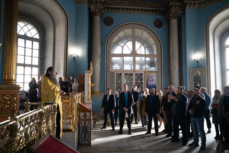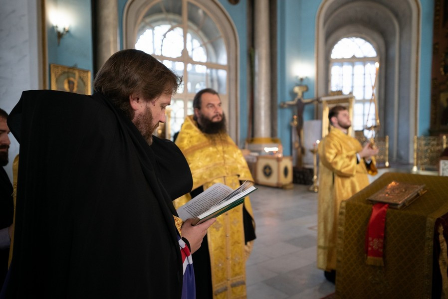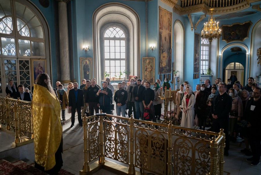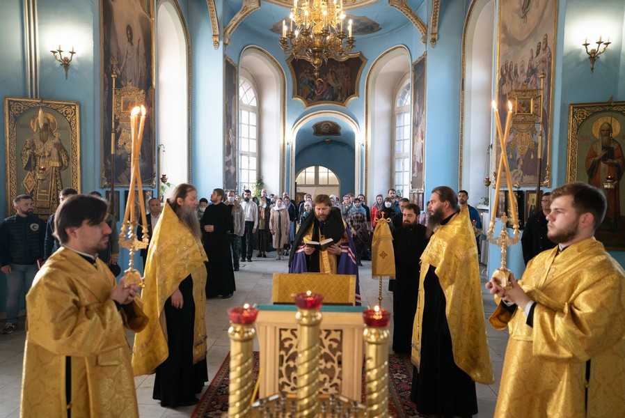 Традиционно День открытых дверей ШПМ начался молебном в храме великомученика Никиты Готского на Старой Басманной, который возглавил епископ Фома.
