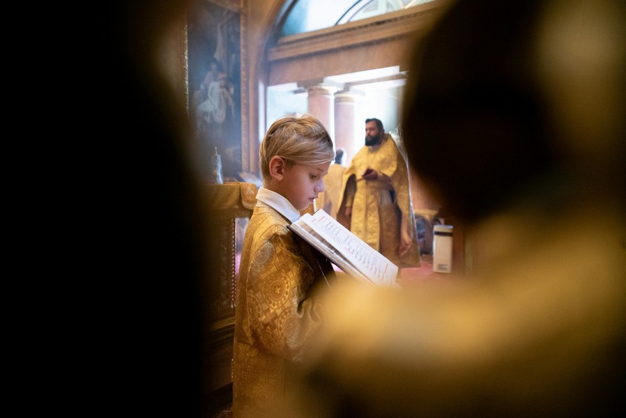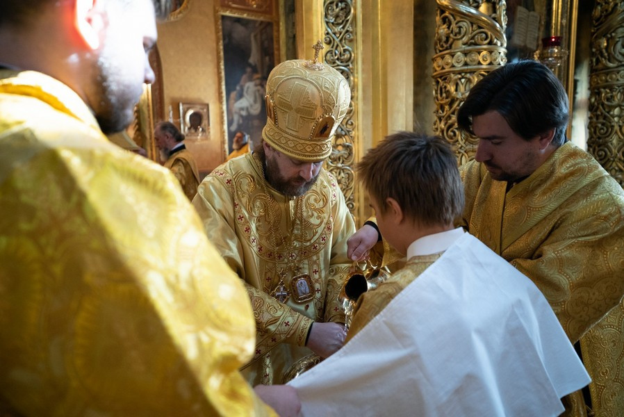 Епископ Павлово-Посадский Фома в сопровождении детского клироса отслужил Литургию в Богоявленском кафедральном соборе