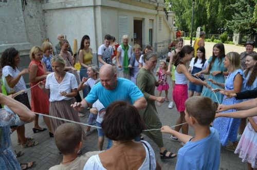 В воскресенье, 7 августа, после Литургии, у храма прп. Сергия Радонежского в Солнцево собрались родители с детьми для того, чтобы принять участие в очередной игротеке — занятии, посвященном совместным уличным играм.