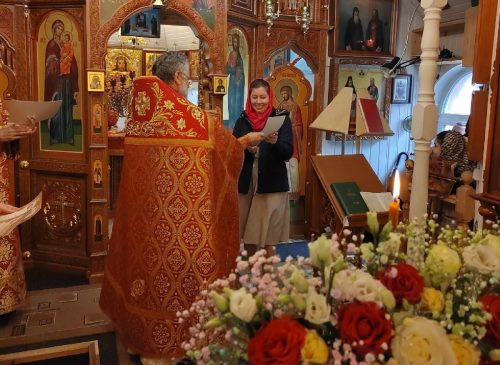 Отец Андрей поблагодарил женщин за те труды, что они несут на приходе и вручил благодарственные письма.