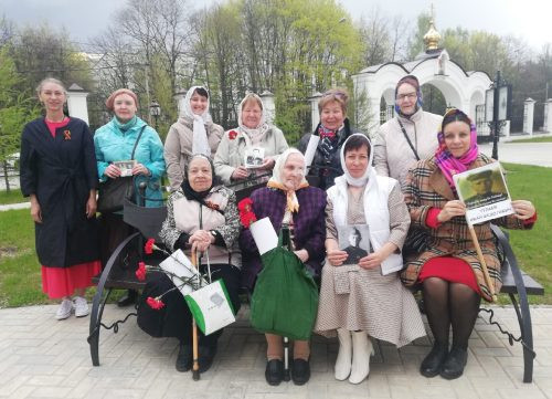 Ребята прочитали стихи, а затем вместе со всеми исполнили: «Катюшу» и «От героев былых времен». Прихожанам, пережившим войну, подарили гвоздики, а от социальной службы храма ветеранам и «детям войны» вручили православные календари, ароматное фигурное мыло ручной работы и сладости к чаю.