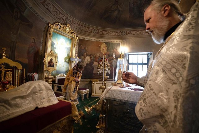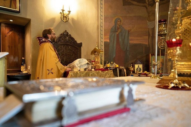25 августа в храме святителя Николая Чудотворца в Хамовниках епископ Павлово-Посадский Фома совершил Божественную литургию в Алексеевском приделе. ⠀ Его Преосвященству сослужил клирик храма иеромонах Никодим (Колесников).