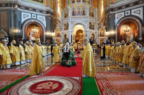 28 июля 2020 года, в день памяти равноапостольного великого князя Владимира, день церковно-государственного праздника Крещения Руси, Святейший Патриарх Московский и всея Руси Кирилл совершил Божественную литургию в кафедральном соборном Храме Христа Спасителя в Москве.