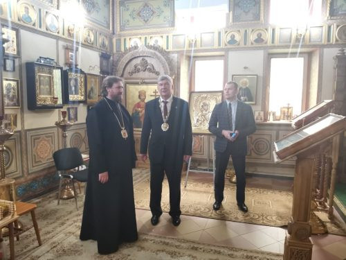 В ходе посещения храма владыка Фома встретился с ректором ГУЗ С.Н. Волковым и проректором по воспитательной работе Н.И. Ивановым. Они обсудили с епископом Фомой внеучебную работу со студентами и просветильские программы вуза.