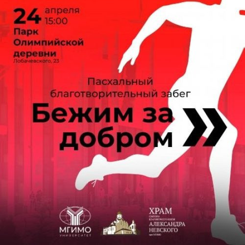 24 апреля в 15:00 МГИМО совместно с храмом святого благоверного князя Александра Невского при МГИМО проведёт Пасхальный благотворительный забег. Будут предложены две дистанции на выбор: 1 км или 3 км в Парке Олимпийской деревни.