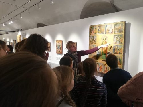 10 апреля 2022 года воспитанники воскресной школы и участники молодёжного движения «Дмитровцы» посетили уникальную выставку «Святые врачи. Образы целителей в восточнохристианском искусстве» в музее преп. Андрея Рублева.