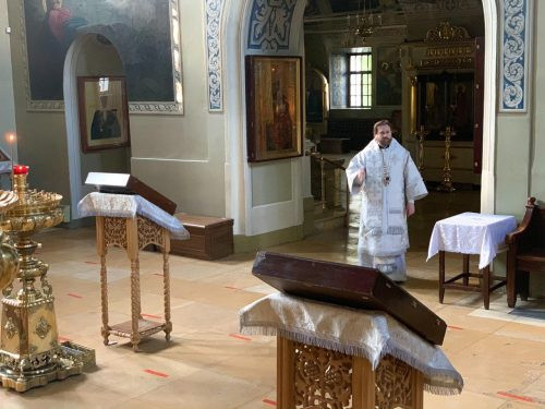 28 мая 2020 года, праздник Вознесения Господня, епископ Фома совершил Божественную литургию в храме святителя Николая в Хамовниках.