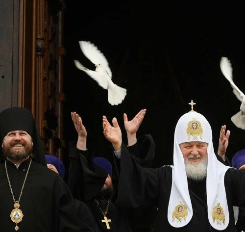 По древней традиции в праздник Благовещения после богослужения Святейший Владыка выпустил в небо голубей с западной паперти Храма Христа Спасителя.