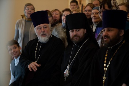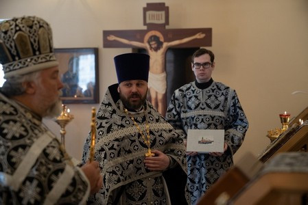 По окончании богослужения отец Иоанн преподнес владыке в дар альбом с историей храма, а владыка, в свою очередь, поблагодарил всех за совместную молитву и произнес проповедь о духовной сути человека.