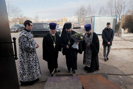 Затем епископ Фома осмотрел место строительства будущего каменного храма и ознакомился с планом работ.