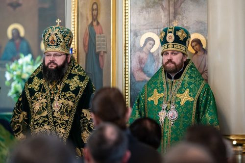 По окончании Литургии митрополит Дионисий передал молящимся благословение Святейшего Патриарха Московского и всея Руси Кирилла и поздравил всех с праздником.