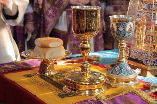 1. Имея в виду, что принесение Бескровной Жертвы ни в коем случае не может быть отменено, ибо там, где нет Евхаристии, нет церковной жизни, а также что Святые Тело и Кровь Христовы преподаются во здравие как души, так и тела (см., к примеру, молитвы святителя Иоанна Златоуста, 7-ую и 9-ую из последования ко Святому Причащению), с учетом, при этом, исторической практики Православной Церкви в условиях эпидемий[1] — преподавать Святые Христовы Тайны с обтиранием после каждого причастника лжицы пропитанным спиртом платом (с регулярным обновлением пропитки) и окунанием затем ее в воду с последующей утилизацией воды согласно практике, предусмотренной при стирке платов.