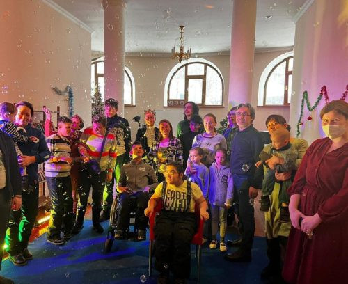Поздравили подопечных детей с ограниченными возможностями здоровья: показали им рождественский спектакль, подарили подарки и устроили для них небольшое мыльное шоу.