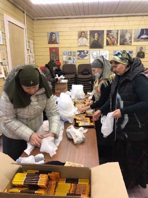4 января 2022 года добровольцы и сестры милосердия «Одигитрия» при храме Успения Богородицы в Матвеевском традиционно подготовили и упаковывали подарки к Рождеству Христову для заключённых СИЗО-5.