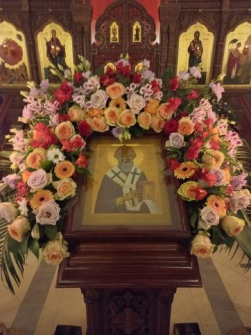 В преддверии праздника в храме святителя Спиридона Тримифунтского были установлены большие напольные киоты с новыми иконами, которые во время молебного пения освятил отец Илия Кочуров.