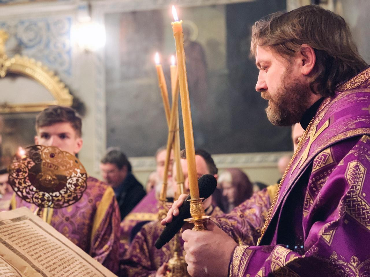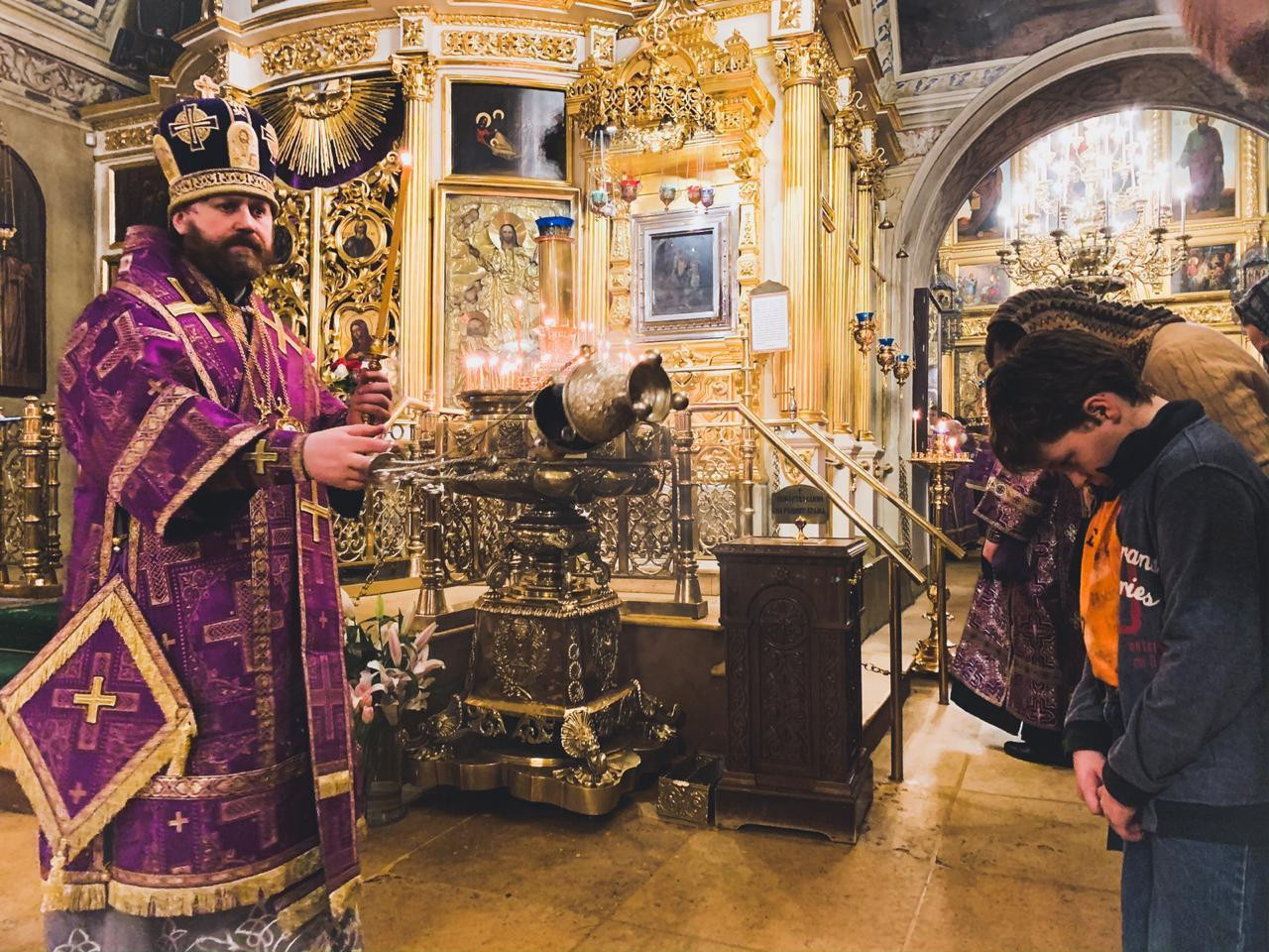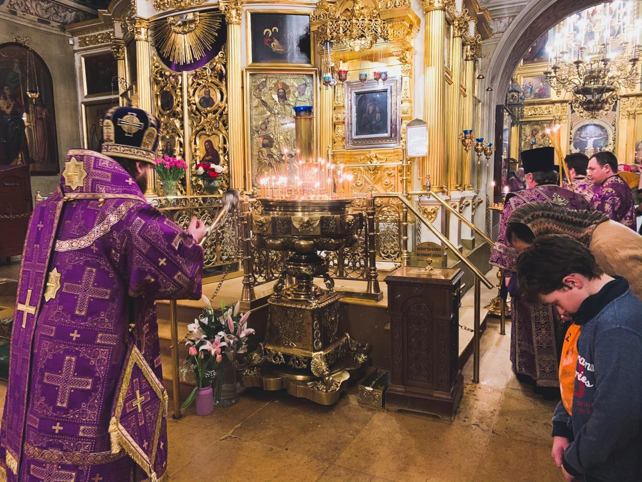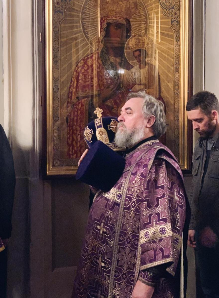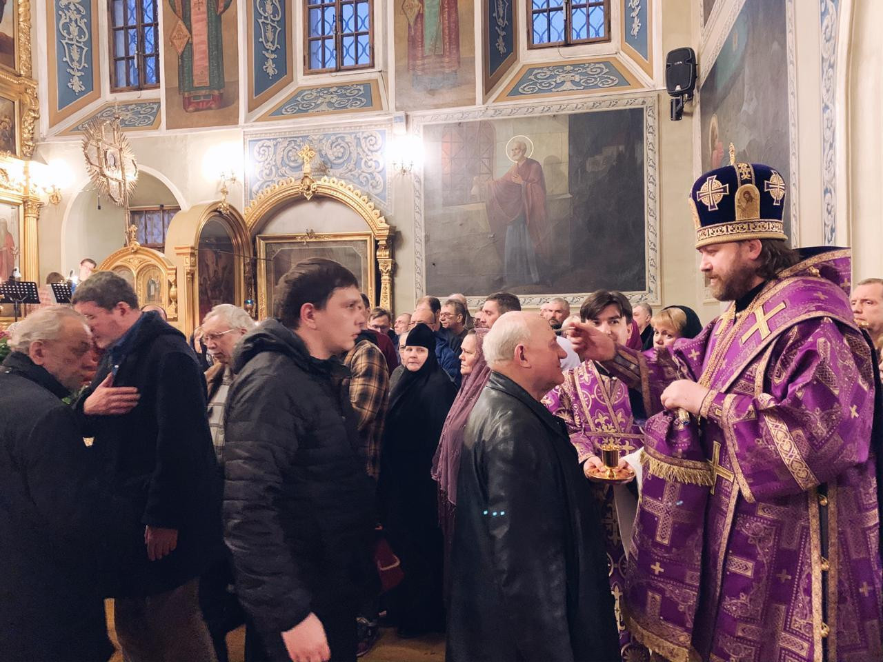 Вечером 7 марта 2020 года, в канун праздника Торжества Православия, епископ Павлово-Посадский Фома совершил всенощное бдение в храме святителя Николая в Хамовниках.
