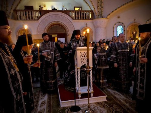 В понедельник первой седмицы Великого поста епископ Фома совершил повечерие с покаянным каноном в соборном храме в Переделкине