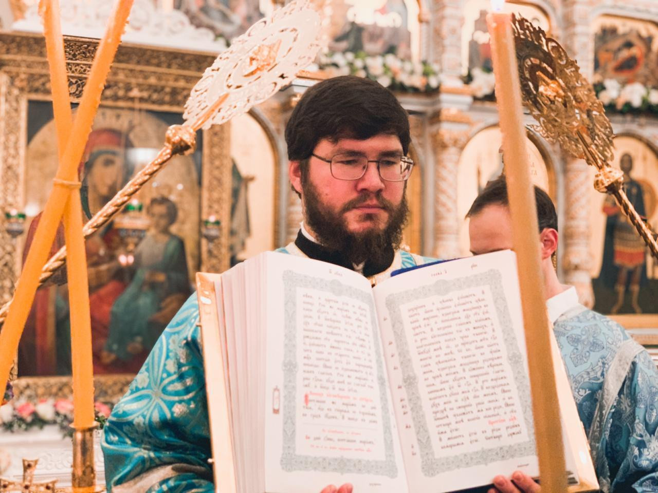 Владыке сослужил игумен Антоний (Зеленчуков).