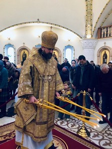 Его Преосвященству сослужили клирики храма и схиархимандрит Илий (Ноздрин).