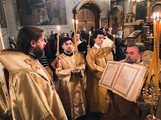 Вечером 14 декабря 2019 года, в канун Недели 26-й по Пятидесятнице, управляющий Западным викариатством епископ Павлово-Посадский Фома, совершил всенощное бдение в храме святителя Николая Чудотворца в Хамовниках.