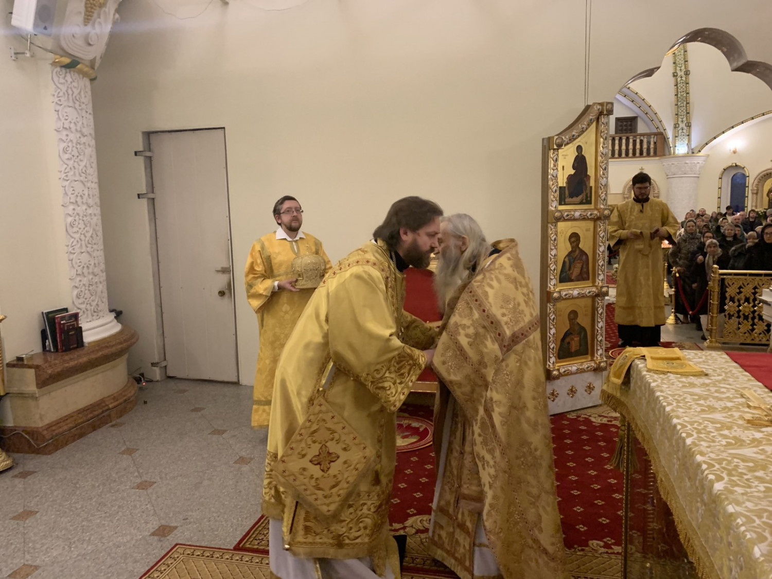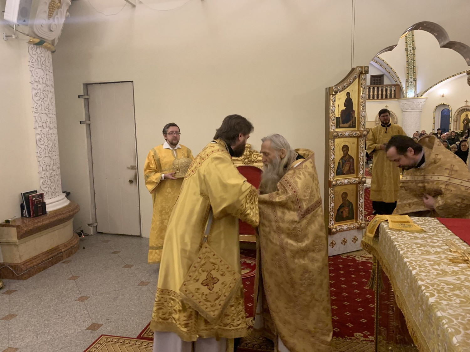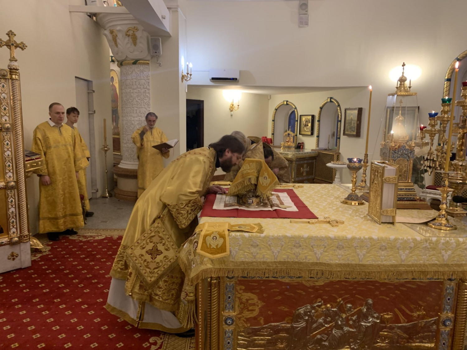 Накануне, в субботу, 23 ноября, епископ Фома совершил всенощное бдение в храме святителя Николая в Хамовниках.