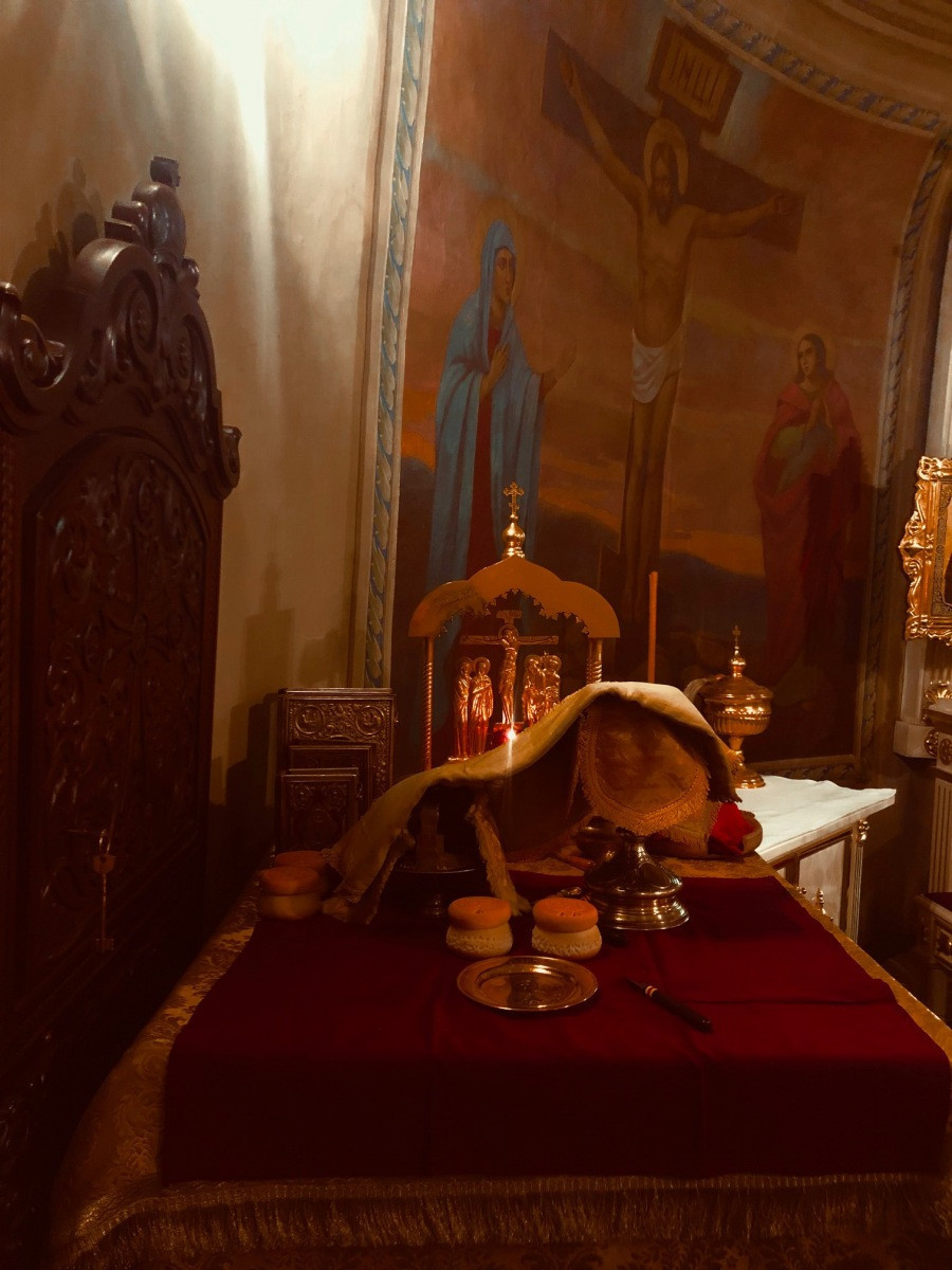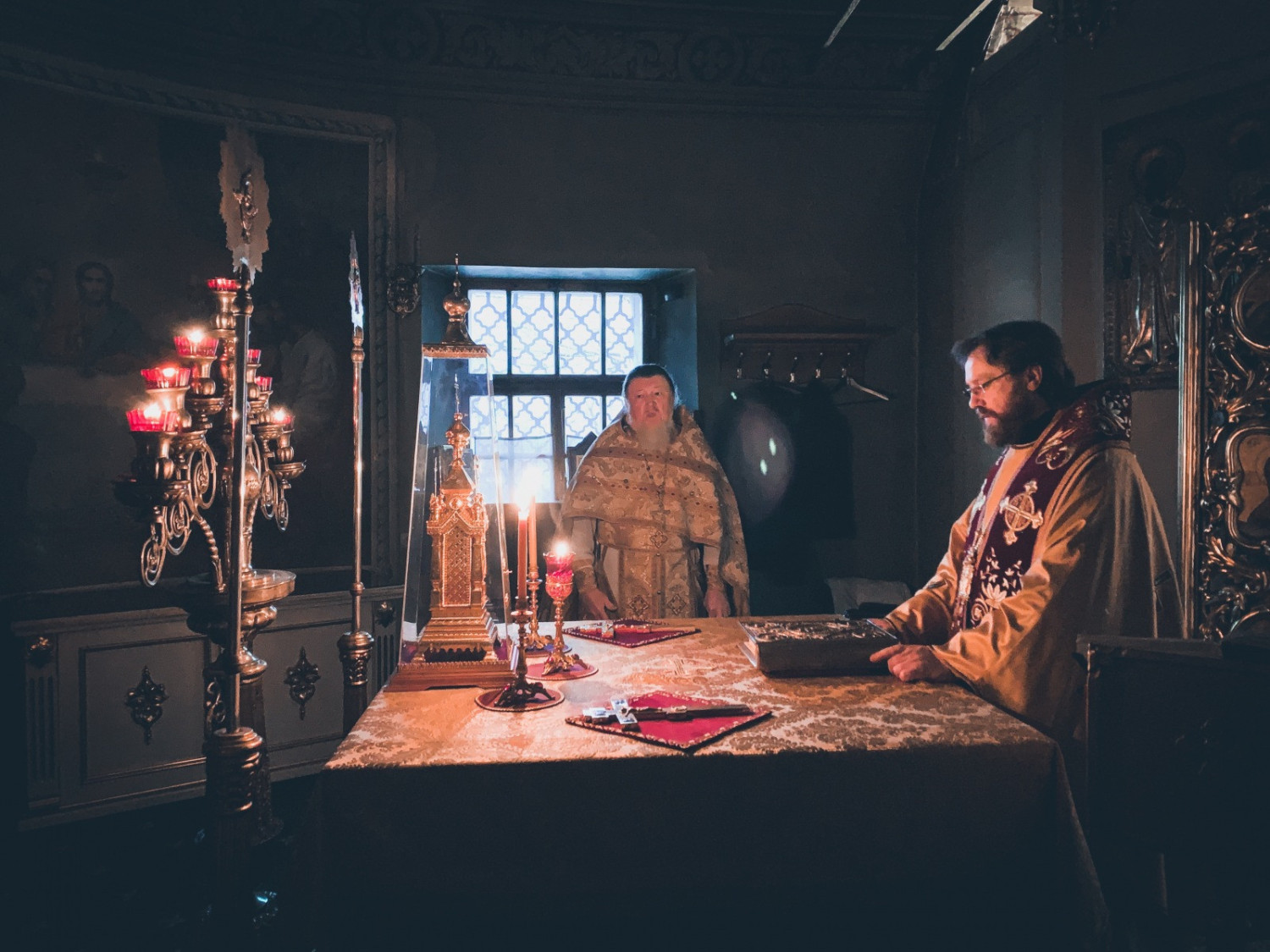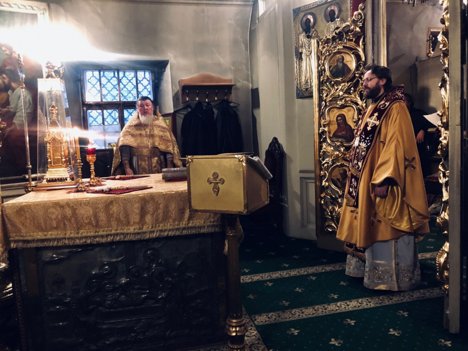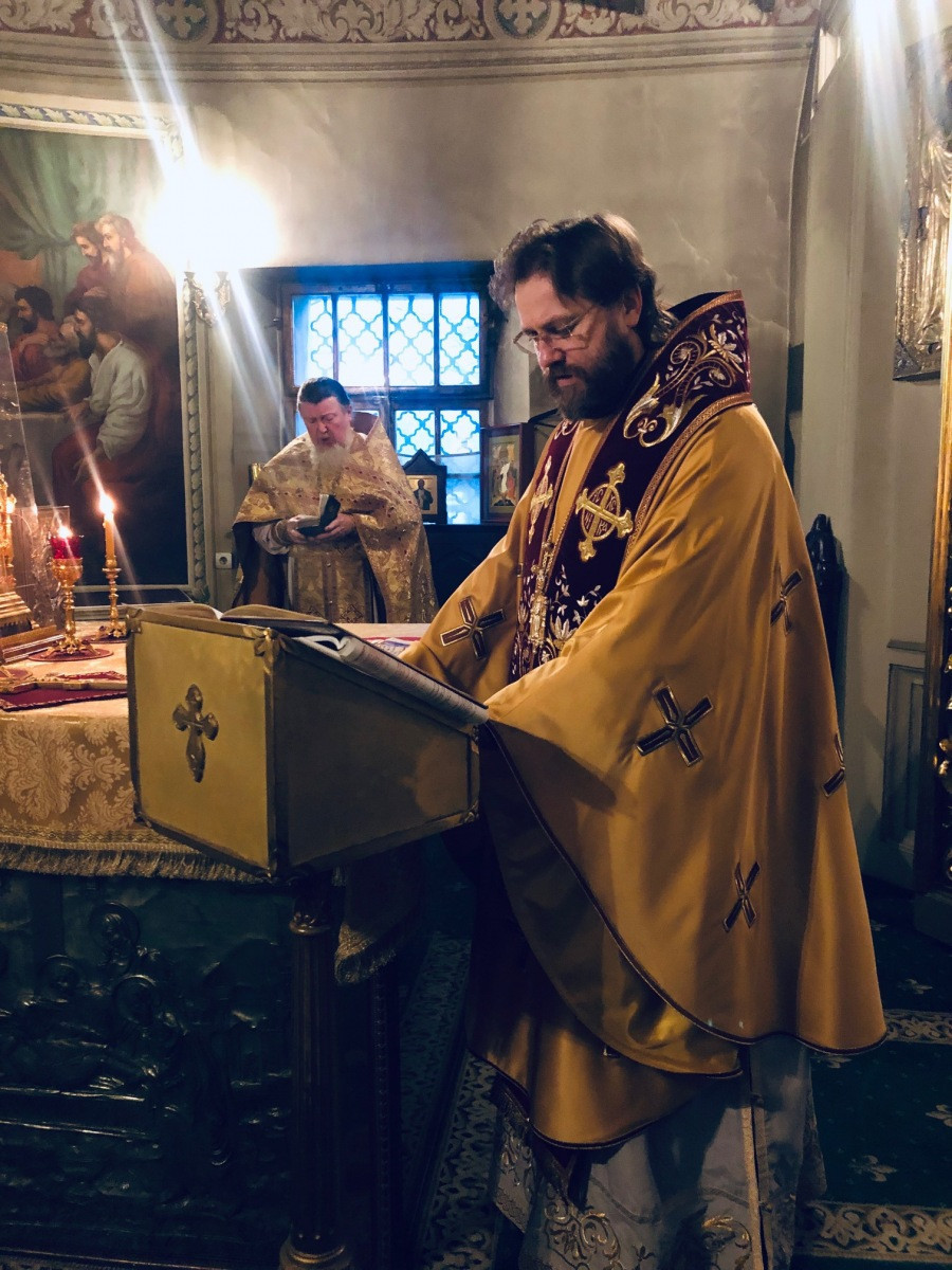 Днем ранее, 7 ноября, епископ Фома также служил в этом храме. Его Преосвященство в сослужении клириков Никольского храма совершил Божественную литургию в центральном приделе.