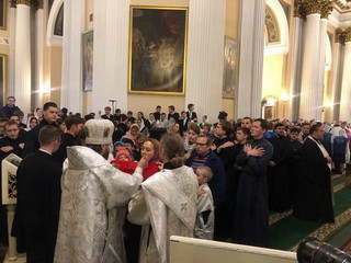 Проповедь перед причастием произнес настоятель Князь-Владимирского собора г. Санкт-Петербурга протоиерей Владимир Сорокин.
