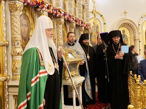 «Их молитвами да хранит Господь всех вас, мои дорогие, и постоянных прихожан этого святого храма, и тех, кто, может быть, не всегда его посещает, но тем не менее связывает себя с этим святым местом. Надеюсь, что принесение сюда святых мощей еще больше будет укреплять веру и благочестие в тех, кто с этим храмом связывает свою молитвенную жизнь. Еще раз всех вас поздравляю с праздником!» — сказал Святейший Патриарх Кирилл.