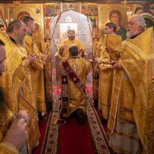 По окончании литургии отец Димитрий обратился к владыке с приветственным словом и подарил ему на молитвенную память икону.