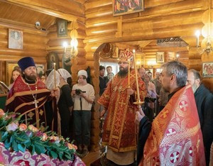 Высокопреосвященнейшему владыке сослужили: настоятель протоиерей Иоанн Чураков, священник Сергий Иванов и клирики храма.