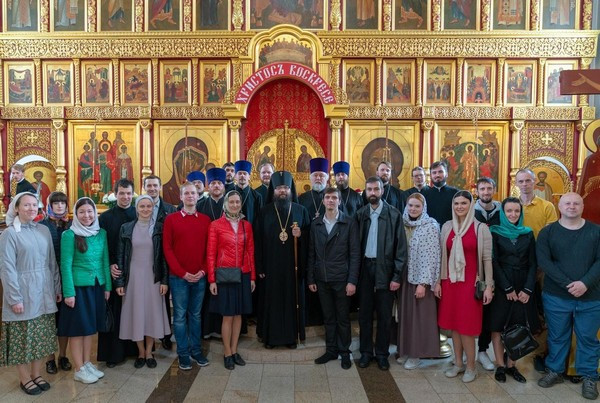 За Богослужением Его Высокопреосвященству сослужили: благочинный Михайловского округа г. Москвы прот.Георгий Студенов, настоятель храма Воскресения Христова в Толстопальцеве свящ.Димитрий Кузьмичев, клирики храма, а также ответственные за молодежное служение на приходах Западного викариатства в священном сане, приглашенное духовенство г.Москвы.