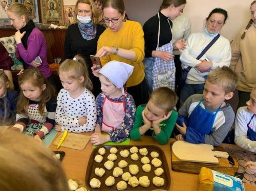 Ученики Воскресной школы храма Рождества Богородицы в Крылатском на мастер-классе учились печь «жаворонков»