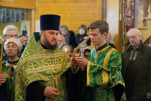 В конце богослужения настоятель храма протоиерей Леонид поблагодарил владыку за визит и в ответ, Архиепископ Матфей поздравил всех прихожан с престольным праздником и рассказал про житие преподобного Алексия. За Богослужением пел хор храма под управлением регента Александра Критского.
