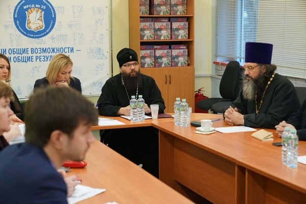 19 марта 2019 состоялось совещание Его Высокопреосвященства Матфея, архиепископа Егорьевского, управляющего Западным викариатством города Москвы с инспектором Департамента образования города Москвы по Западному округу Османовой Г.А. и председателями 4 МРСД Западного округа. В совещании также приняли участие представители Западного викариатства, ответственные за взаимодействие со школами, и методист Городского методологического центра при Департаменте образования города Москвы Голубева Н.Е.
