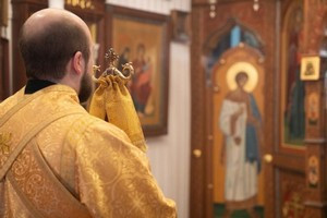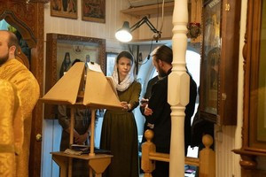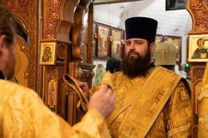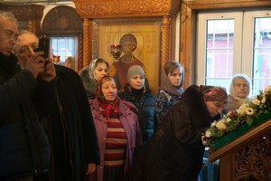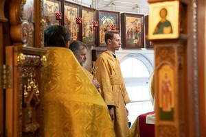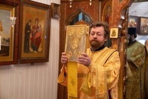 После запричастного стиха штатный клирик храма, иерей Михаил Володин произнес проповедь о блаженной Матроне Московской, значении ее подвига в годы богоборческого лихолетья.