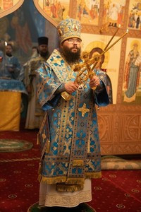 Его Высокопреосвященству сослужили: благочинный Георгиевского округа протоиерей Серафим Недосекин настоятель храма протоиерей Георгий Сорокин и духовенство храма.