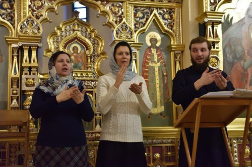 18 января 2020 г. богослужение на Крещенский сочельник сопровождалось переводом на русский жестовый язык. Среди молящихся в храме присутствовали неслышащие. Перевод на русский жестовый язык обеспечивали диак. Артемий Овчаренко и глухая Татьяна Зверева. Кроме того, слушательница Церковно-приходских курсов русского жестового языка Ирина Пучкова дебютировала как переводчик, переведя для глухих на РЖЯ молитву «Отче наш».