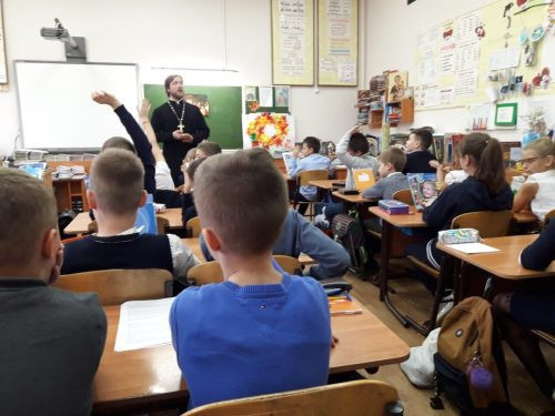 7 ноября 2019 года настоятель храма святителя Спиридона Тримифунтского в Фили-Давыдково протоиерей Илья Кочуров посетил урок Основа православной культуры в школе «Интеграл».