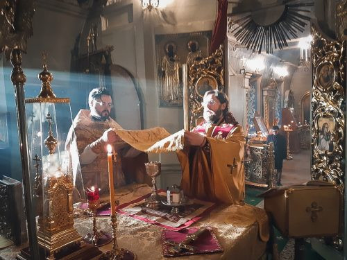 Его Преосвященству сослужили клирики храма. По окончании литургии владыка произнес краткую проповедь.